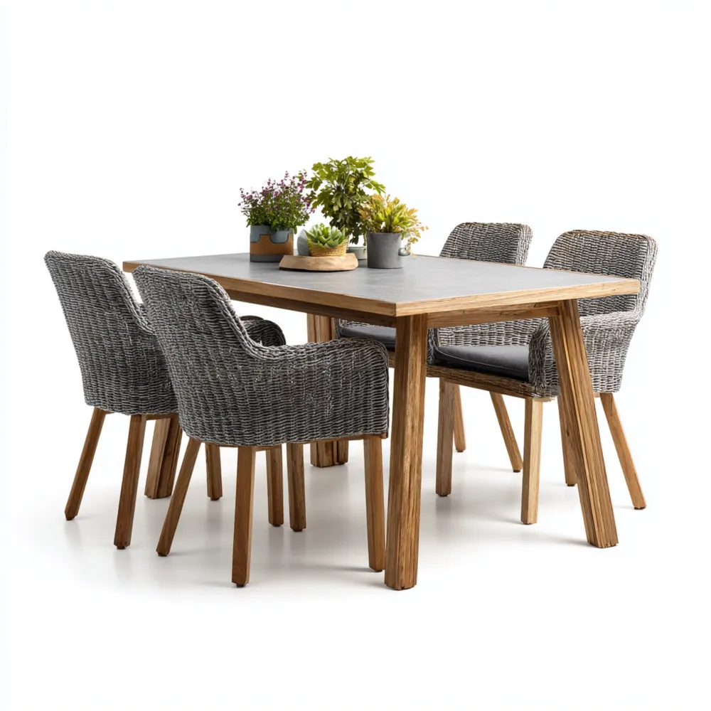 Garten-Esstisch-Set Holz 150x90 cm – Grau/Natur – Moderner Stil