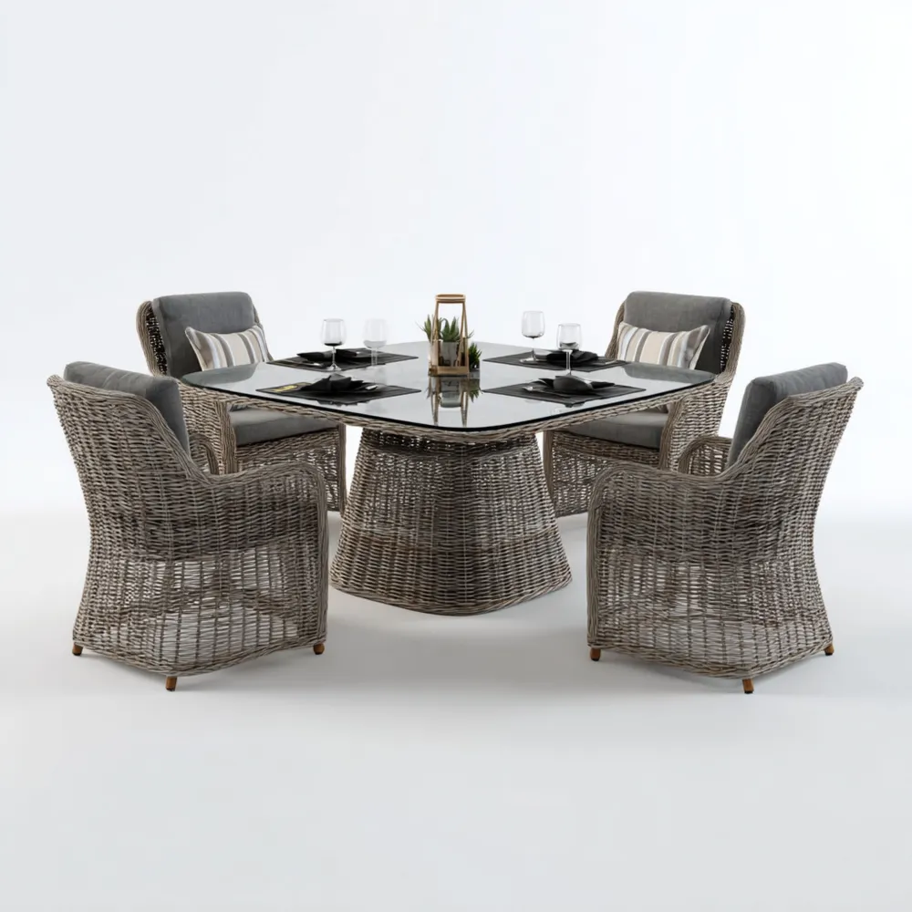 Garten-Esstisch-Set Polyrattan 150x150x75 cm – Grau – Modernes Design