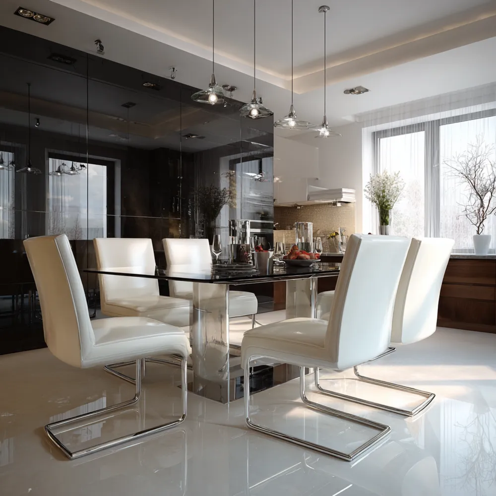 Esszimmer-Set Glas Metall 180x90x75 cm – Weiß – Modernes Design