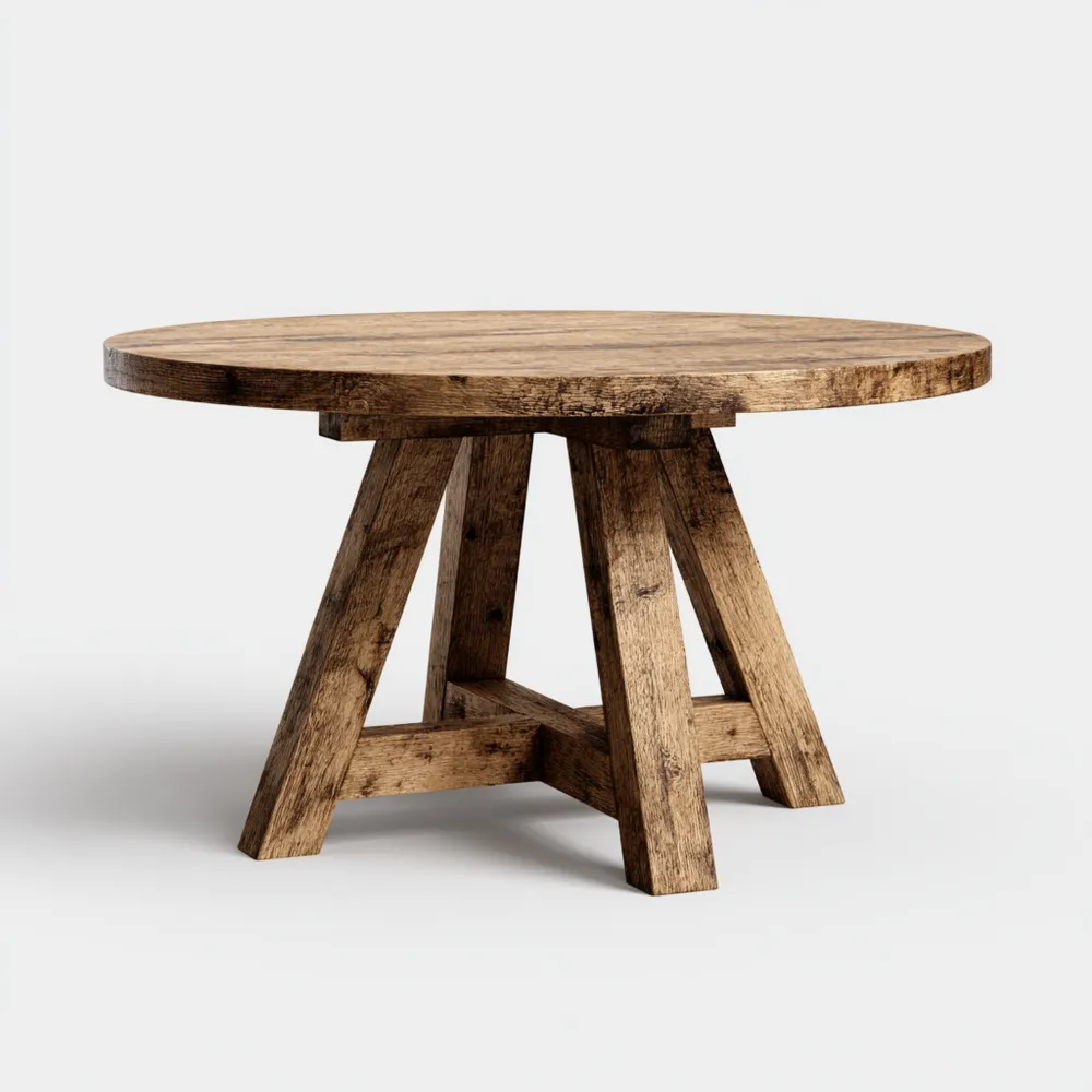 ProduktbeschreibungDieser runde Esstisch aus massivem Holz beeindruckt durch sein rustikales Design und verleiht jedem Esszimmer Wärme und Charme.