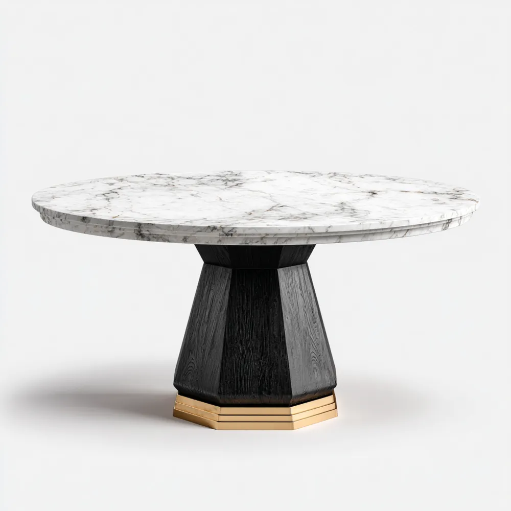 Lieferumfang- 1 x runder Esstisch mit Marmorplatte und Sockel